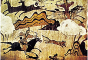 바야흐로 진달래 꽃이 흐드러지게 피기 시작하는 계절. 춘흥을 이기지 못한 한량과 기생들이 봄나들이에 나섰다. 이들이 지나가는 뒷 산과 앞 산에는, 기생의 볼 연지만큼이나 발그스레한 진달래꽃이 수줍은 듯 피어 있어 보는 사람들의 가슴을 더욱 설레이게 한다. 한량들은 봄기운같이 얇은 배자를 입고 봄을 꺾으려고 나섰다. 소매가 좁고 춤이 짧은 저고리에 풍성한 치마를 입은 기생들은 한량들 사이에서 꽤나 알려진 명기(名妓)들인 것 같다. 그녀들의 요구라면 꼼짝 못하고 설설 기는 한량들의 모습이 그것을 말해 주고 있다.